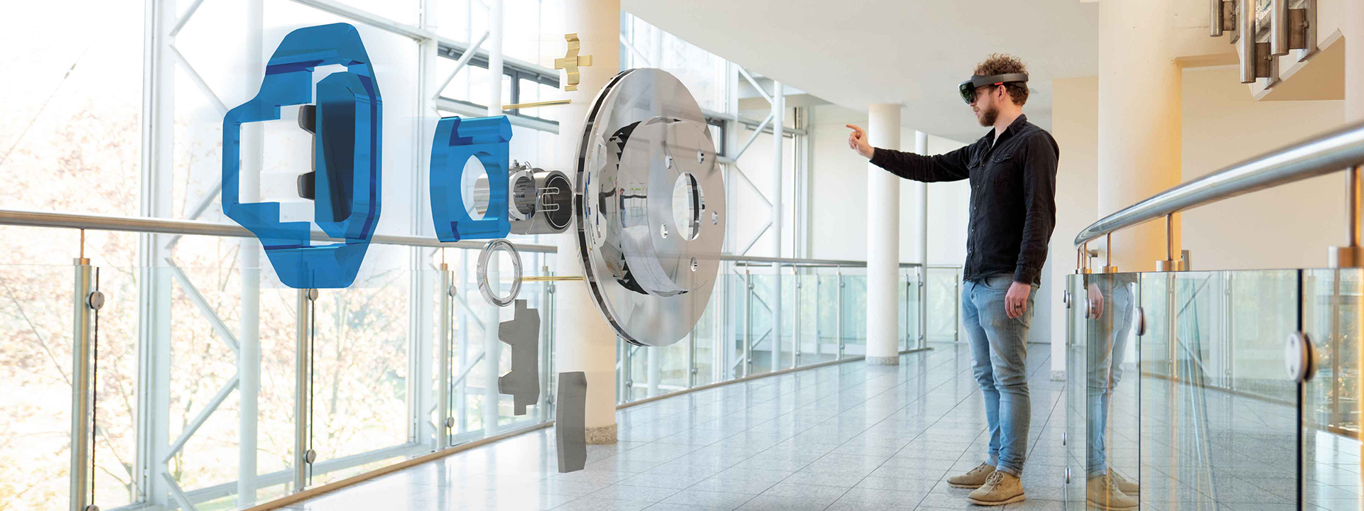 完成所有上述学习,我们无需进入到真正的挖掘机驾驶室内,我们甚至不用出门。唯一需要做的事情就是戴上一副MR(Mixed Reality)眼镜,打开由TÜV莱茵学院与RWE Power AG 合作开发全息场景应用程序。该应用程序允许未经任何培训的维护人员学习如何以更高的水平操作机器。