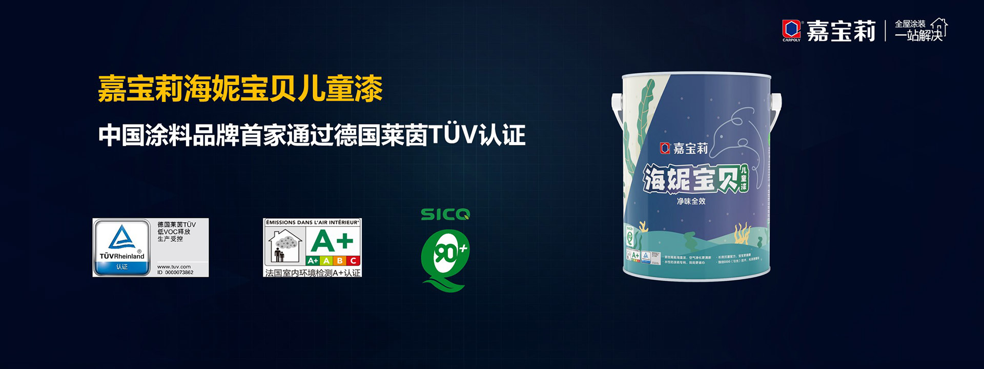 海妮宝贝儿童漆是嘉宝莉2019年下半年上市的一款升级产品,此次环保认证再升级,继“品质90+”之后,再获德国莱茵TUV低VOC释放及生产受控China-mark认证,成为首家获此认证的中国涂料品牌企业。