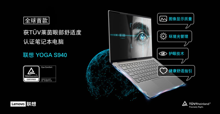 而在产品研发的过程中,联想就参照TÜV莱茵的认证要求,不断改进完善产品。经过研发工程师的不懈努力,终于成功获得了全球首张笔记本电脑眼部舒适度认证。2019年12月, S940-14IIL获颁TÜV莱茵全球首张笔记本电脑眼部舒适度认证;并于2020年5月举行了颁证仪式。产品屏幕经测试符合以下要求: