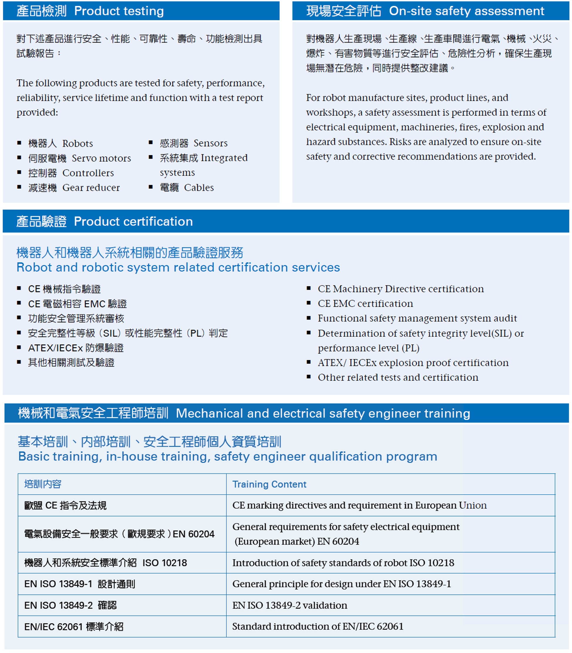 機器人與機器人系統檢測驗證服務