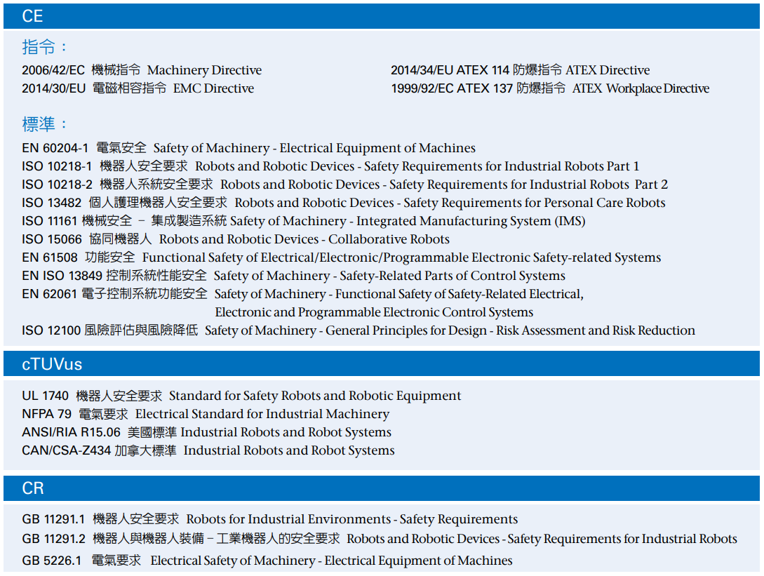 隨著機器人和機器人製造系統日漸廣泛應用,其安全性也越加重要。「CE」標識是一種安全認證標識,被視為製造商打開並進入歐洲市場的護照。凡是貼有「CE」標識的產品方可在歐盟各成員國內銷售,無須符合每個成員國的,商品在歐盟成員國範圍可自由流通。